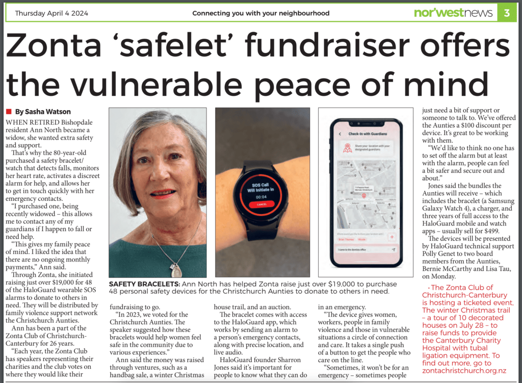 In the April 4, 2024, edition of Nor’west News, our recent initiative to support vulnerable individuals through the Zonta ‘Safelet’ fundraiser was highlighted.