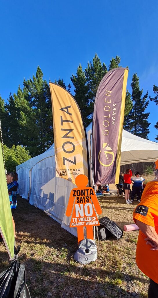 We wore our new T-Shirts sponsored by Golden Homes Christchurch proudly displaying their logo along with the Zonta Dragons logo and the Zonta Says No To Violence Against Women message. We flew the flag and had the Orange Lady proudly displayed.
